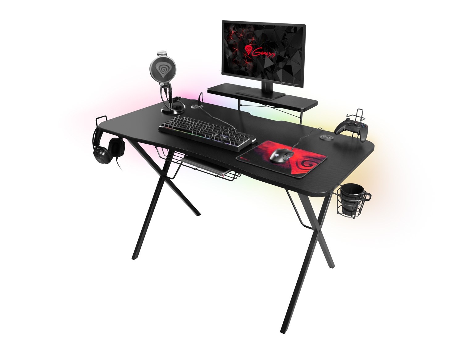 Genesis Holm 300 RGB - herní stůl s RGB podsvícením, 3xUSB 3.0, bezdrátová nabíječka mobilů