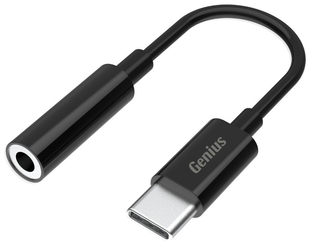 Genius ACC-C100, Redukce, USB-C zástrčka, 3,5mm jack zásuvka, 10cm, černá