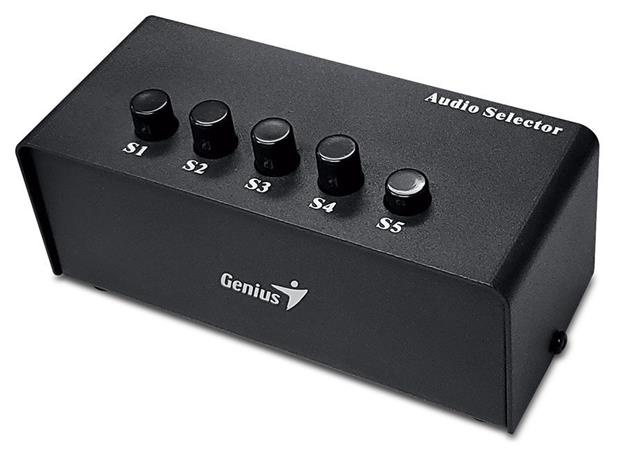 Genius Stereo Switching Box , Přepínač, audio, 2x RCA vstup, 5x 3,5mm jack výstup, stereo, černý