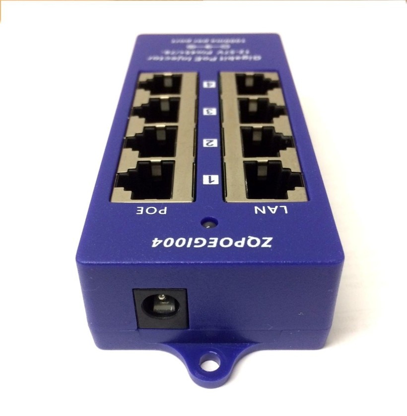 Panel integrující čtyři gigabitové pasivní POE injektory s napájecím rozsahem 12-57V a max. proudem 1000mA/port.
