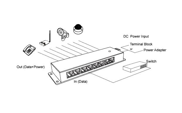 Přidáním tohoto průchozího panelu do rozvaděče získáte napájecí centrum, které jednoduchým způsobem zapojíte mezi stávající switch a patchpanel, který již vede k napájenému zařízení (IP kamera, IP telefon, bezdrátové prvky, apod.).