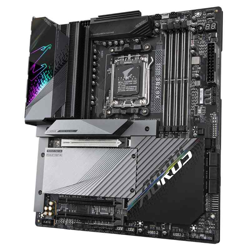 Základní deska značky GIGABYTE je tvořena čipsetem AMD X670E a pro vsazení CPU slouží socket AMD AM5. Její součástí je zvuková karta, která skvěle zvládne 8 kanálů. Patří mezi rozměrné desky pro rozsáhlé herní sestavy, které jsou osazené řadou karet. K instalaci modelu je třeba zvolit PC skříň o rozměru ATX.