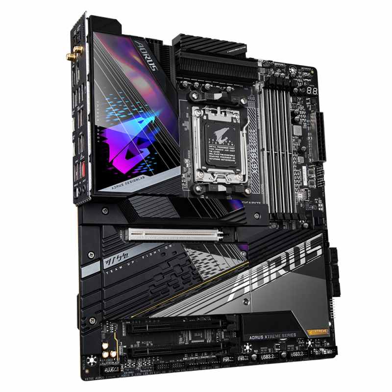 Základní deska značky GIGABYTE je tvořena čipsetem AMD X670E a pro vsazení CPU slouží socket AMD AM5. Její součástí je zvuková karta, která skvěle zvládne 8 kanálů. Patří mezi rozměrné desky pro rozsáhlé herní sestavy, které jsou osazené řadou karet. K instalaci modelu je třeba zvolit PC skříň o rozměru ATX.