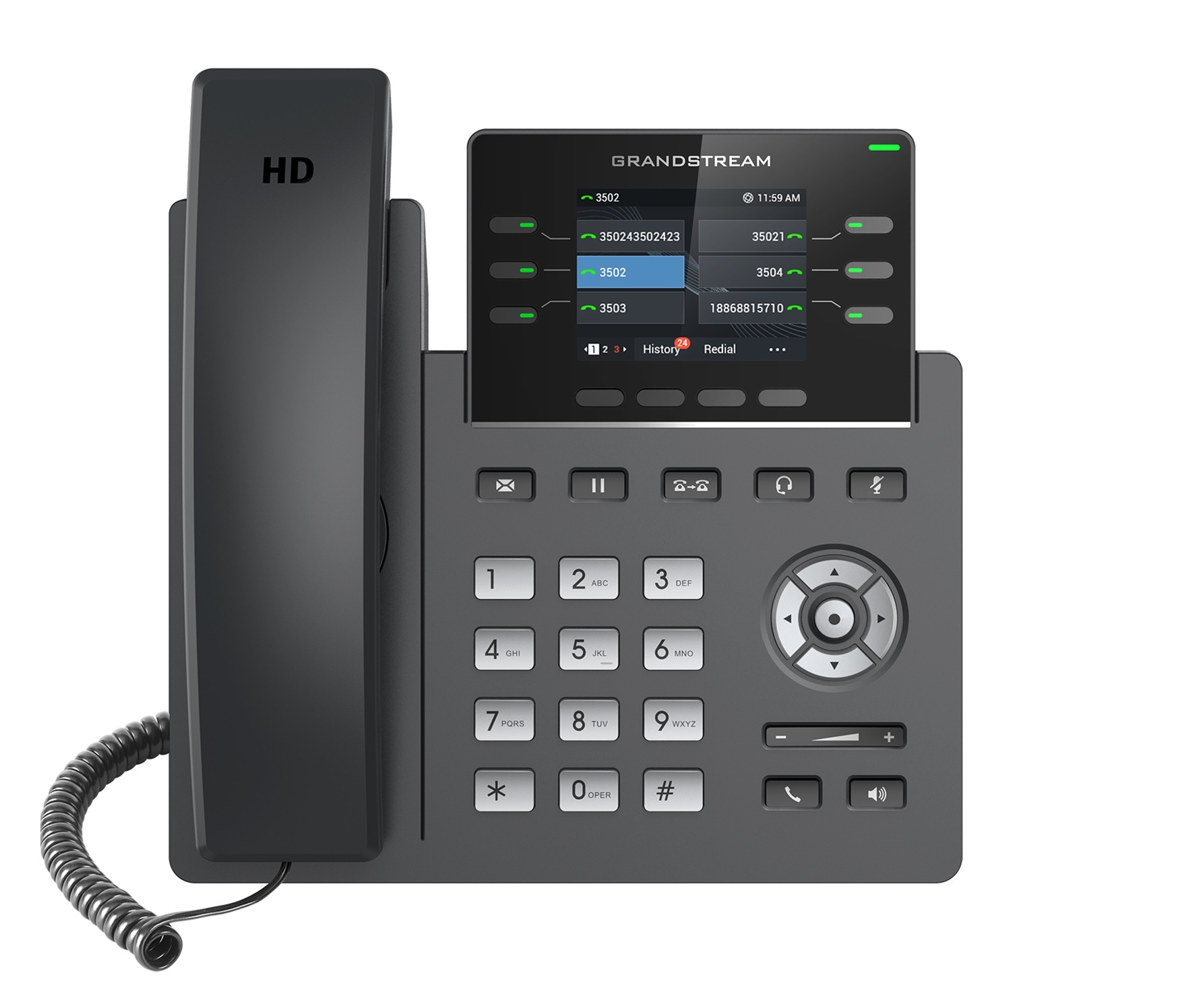 Grandstream GRP2613, 2.8" LCD bar. disp., 3 SIP, Gbit, PoE, 24dig. tl.,