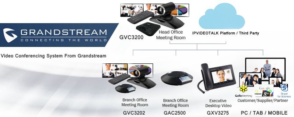 - Plug and Play pro připojení konference ke cloudovému videokonferenčnímu řešení Grandstream's IPVideoTalk