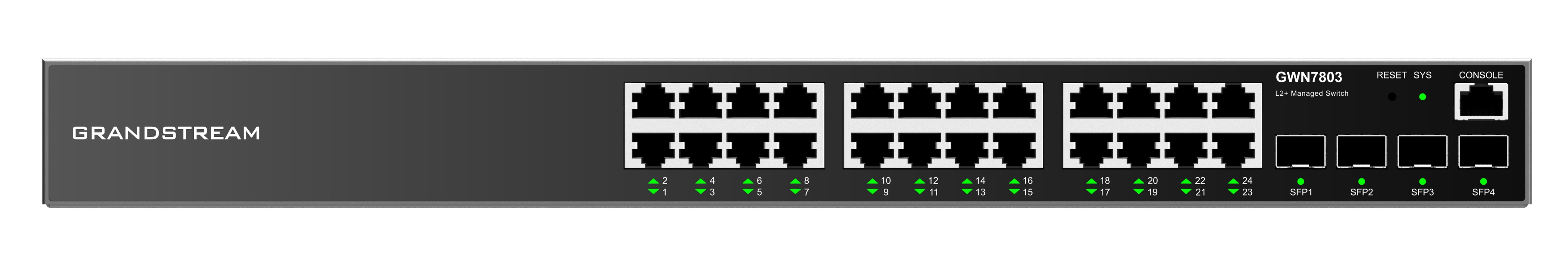 Grandstream GWN7803 L2+ Managed Network Switch 24x 1Gb RJ45, 4x SFP, DHCP, QoS, VLAN