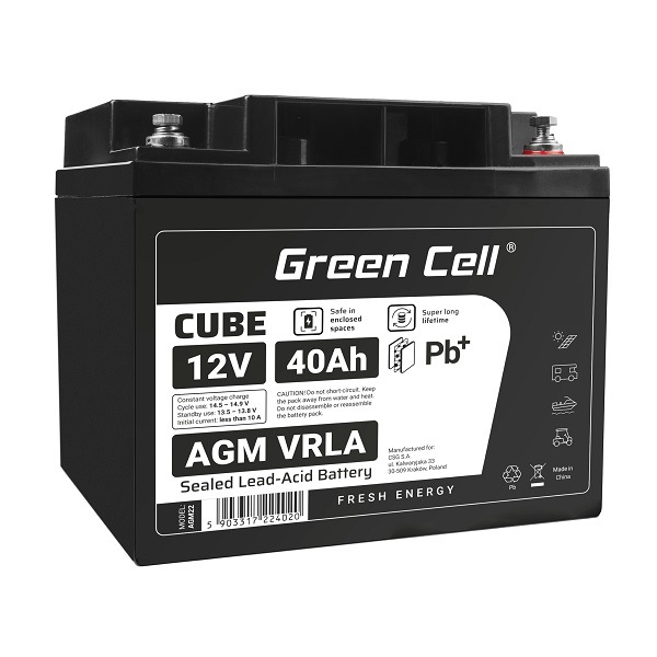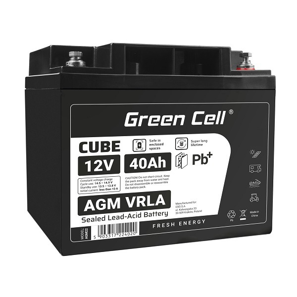 Green Cell CUBE AGM IP54 12V 40Ah VRLA Battery Gel deep cycle scooter mower boat barge mower tractor fishing boat
