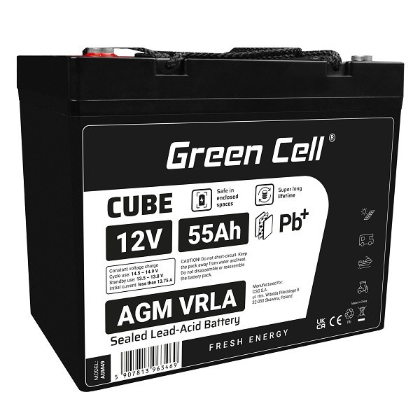 Green Cell CUBE AGM IP54 12V 55Ah VRLA Battery Gel deep cycle scooter mower boat barge mower tractor fishing boat