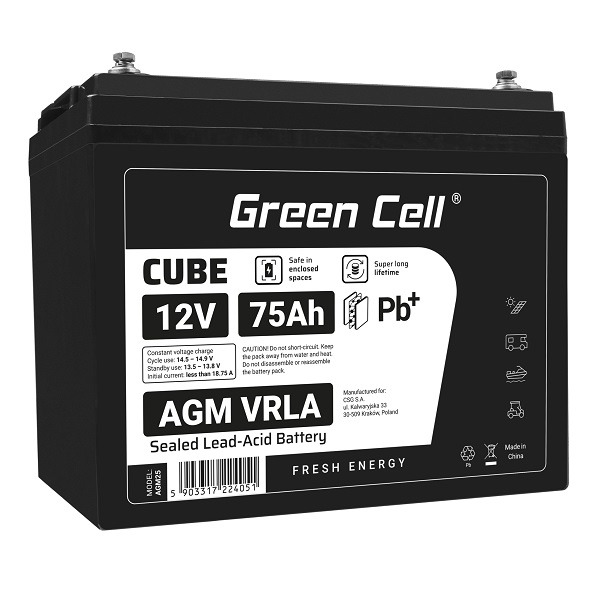 Green Cell CUBE AGM IP54 12V 75Ah VRLA Battery Gel deep cycle powerchair photovoltaic leisure battery campervan