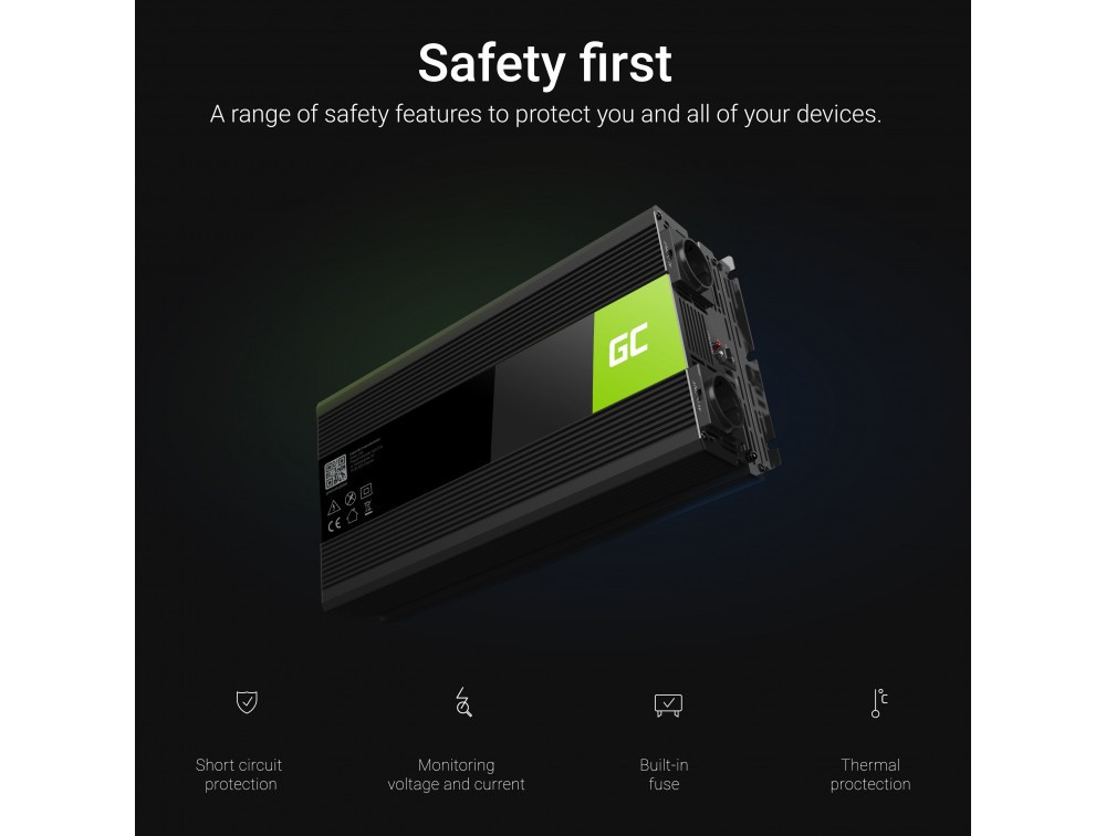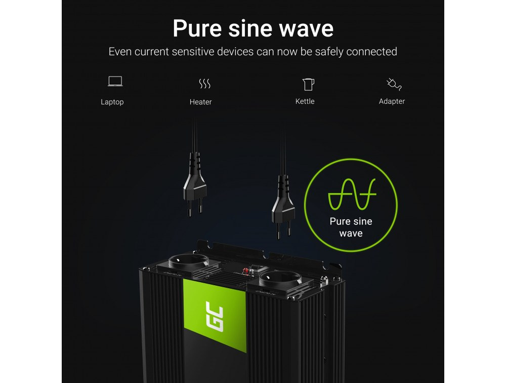 Green Cell Měnič napětí 12V na 230V 1500W/3000W čistá sinusovka