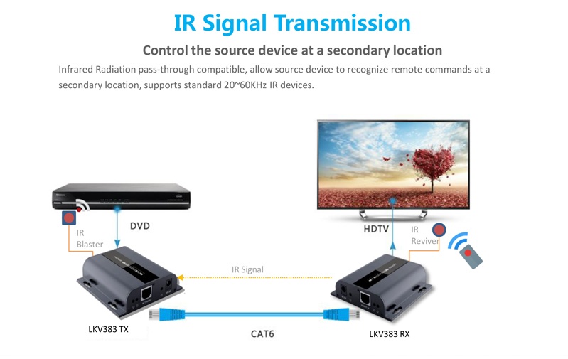 Zařízení umožňuje po jednom síťovém kabelu nebo prostřednictvím LAN sítě přenést HDMI FULL HD signál až na 120m.
