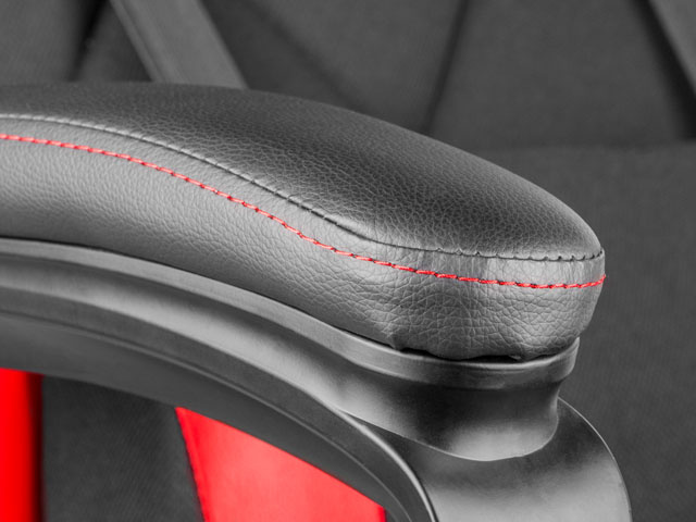Křeslo je vyplněno vysoce kvalitní polyuretanovou pěnou se zvýšenou odolností a pružností o tloušťce 4,5cm na opěradle a 6 cm na sedadle. Kromě toho sedadlo a opěradlo jsou tvarovány tak, aby zajistili maximální pohodlí a podporu páteře na správném místě. Čalounění křesla je zhotoveno z velmi odolného textilního materiálu a PU kůže umístěné na bocích. Odolnost čalounění na sedadle zpevňuje prošití materiálu a trojitý kontrastní lem, který zdůrazňuje jedinečný design křesla Nitro 330.