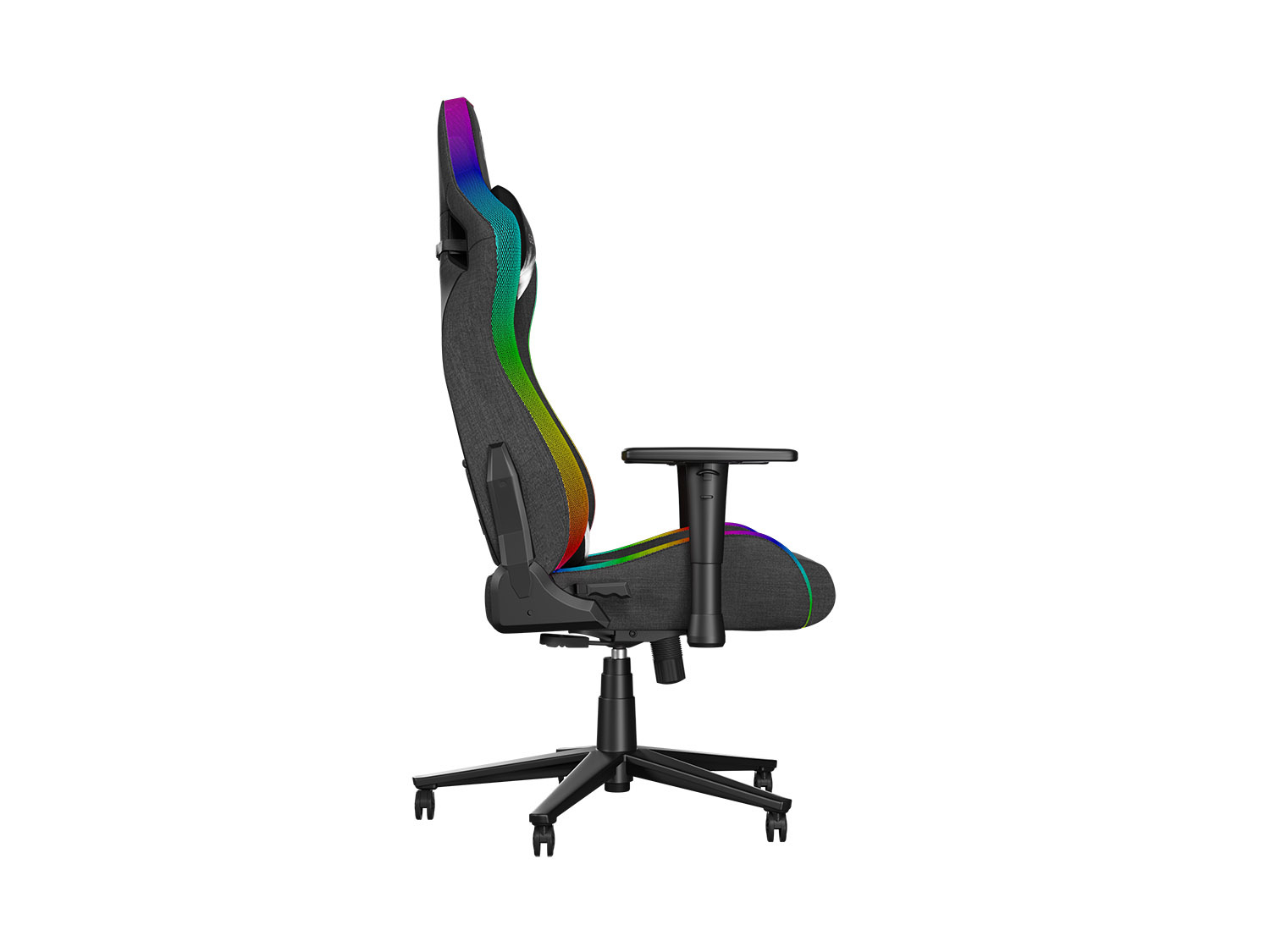 - Ergonomická herní židle s dálkově ovládaným RGB podsvícením s mnoha efekty a režimy umožňujícími nastavení rychlosti a jasu.