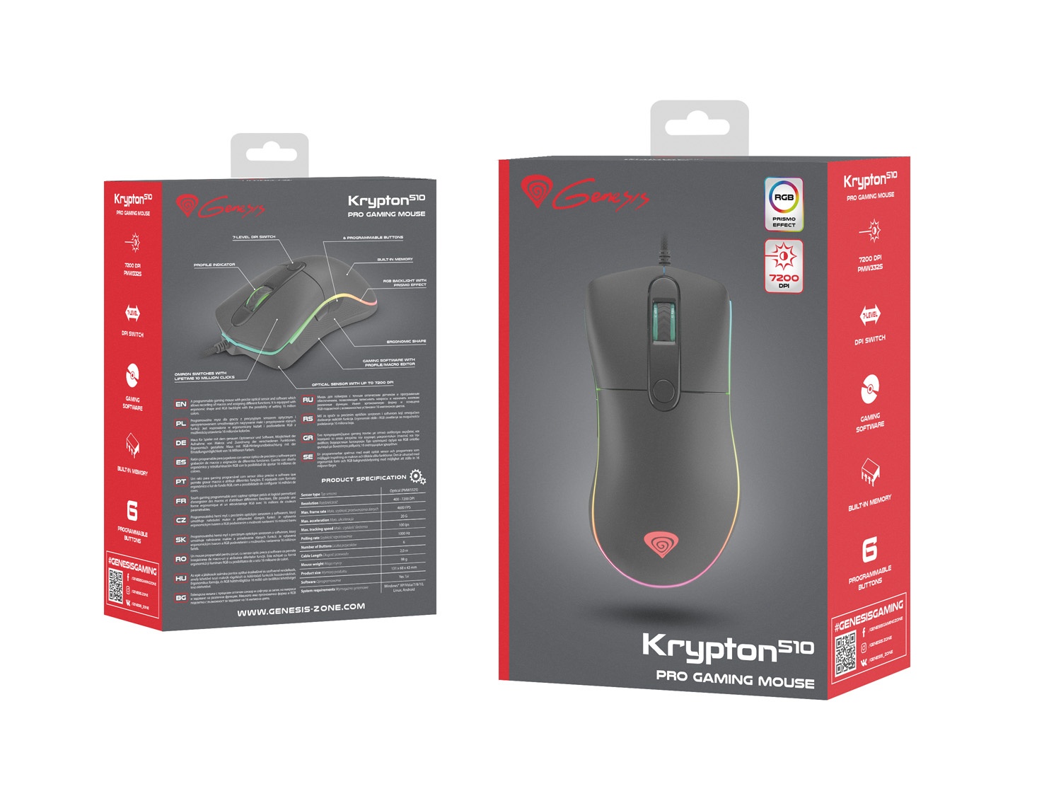 Herní myš Genesis Krypton 510, RGB, 8000 DPI, RGB podsvícení, software