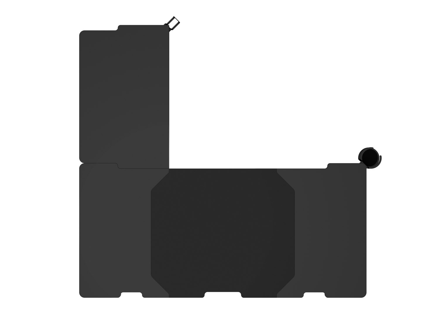 - Modulární rohový stůl s nastavitelnou výškou v pěti úrovních (70 - 90 cm), která umožňuje nastavit výšku podle potřeb uživatele.