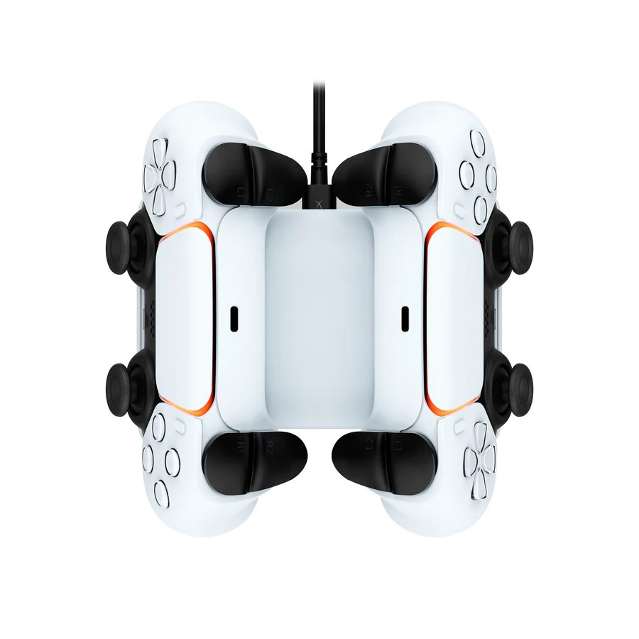 Při hraní na PlaysStation 5 je bez diskuze vždy potřeba dostatečně nabitý ovladač. Proto každý vášnivý hráč PS5 potřebuje dokovací stanici HyperX ChargePlay Duo. Můžete v něm totiž nabíjet dva ovladače DualSense současně, takže máte vždy po ruce druhý ovladač případně dva ovladače pro hru ve dvou na herních večírcích. Nabíjecí stanice poskytuje ovladačům stabilní a vyváženou (zatížením) základnu v černobílém provedení, takže se nemusíte bát, že vám bude často padat. Příjemný design navíc zapadne do každého prostředí a designově ladí s vaším systémem PlayStation 5.