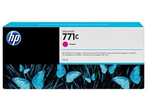 775ml purpurová inkoustová kazeta Designjet HP 771 zaručuje vysokou kvalitu splňující očekávání vašich zákazníků a krátkou dobu dodání. Fotografické inkousty HP Vivid pomáhají rychle reagovat, protože zaručují kvalitní, rychlý, snadný a bezproblémový tisk.