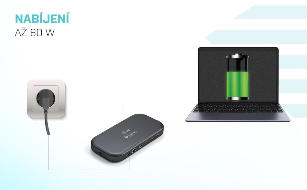 Skvělá kvalita obrazu, rychlý internet a schopnost přenášet data v rychlostech přes 1 GB za sekundu i v případě, že používáte více USB portů zároveň. Také můžete samozřejmě připojit vaše sluchátka či audio a nabíjet váš notebook (60 W), to vše za pomoci jednoho jediného kabelu.