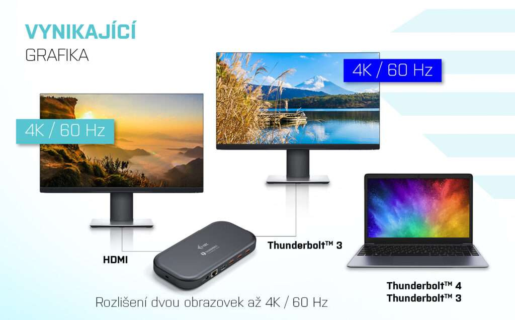 Druhá generace Thunderbolt 3 technologie znamená, že dokovací stanice je nově kompatibilní nejen s porty Thunderbolt“ 3, ale zároveň i USB-C a USB4, což z ní dělá flexibilní řešení pro firmy a uživatele, kteří provozují notebooky a tablety s různými porty (v případě připojení s USB-C a USB4 však bude fungovat pouze jeden monitor a port Thunderbolt 3 na dokovací stanici bude přenášet data rychlostí USB 2.0).