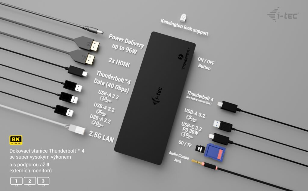 Ultra vysoký výkon, ultrarychlý přenos dat a podpora rozlišení až 8K/60 Hz. Jedna z nejvýkonnějších dokovacích stanic i-tec na trhu!