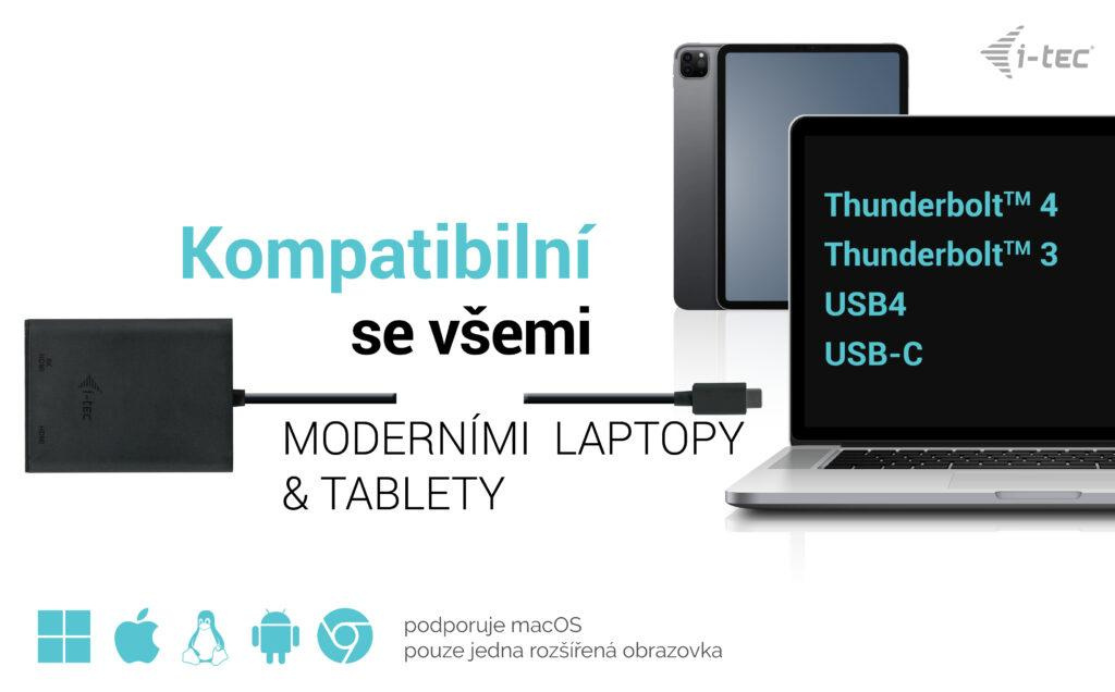 Zařízení s volným portem USB-C nebo USB4 s podporou alternativního režimu DisplayPort nebo portem Thunderbolt™ 3/4