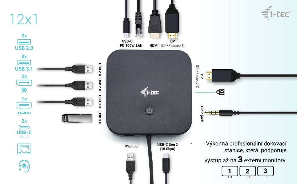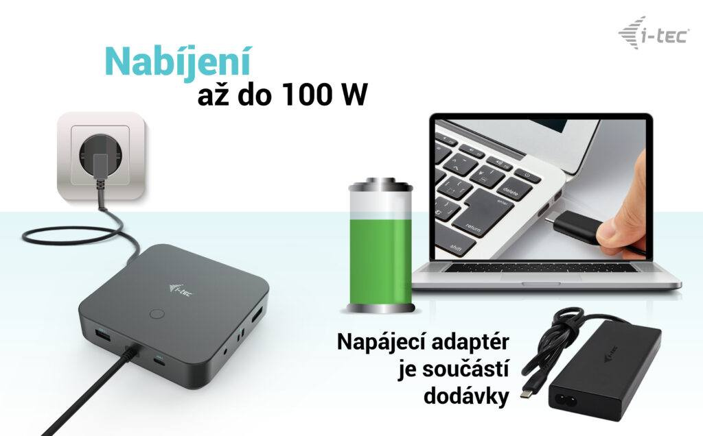 I-tec USB-C HDMI + Dual DP Docking Station with Power Delivery 100 W + i-tec Universal Charger 112 W