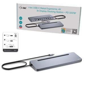 I-tec USB-C Metal Ergonomic 3x 4K Display Docking Station + Power Delivery 100 W