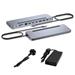 Ergonomická kovová dokovací stanice USB-C s podporou až 3 externích monitorů. Stanice je kompatibilní s jakýmkoli notebookem vybaveným portem USB-C nebo Thunderbolt (60 cm dlouhý integrovaný kabel je dostatečně dlouhý pro připojení všech notebooků s obrazovkami do velikosti 15”). Dokovací stanice poskytuje 4 porty USB, spolehlivé a rychlé připojení k firemním sítím díky integrovanému portu LAN a napájení až 100 W. Konstrukce stanice umožňuje také její použití jako stojanu pro notebook.