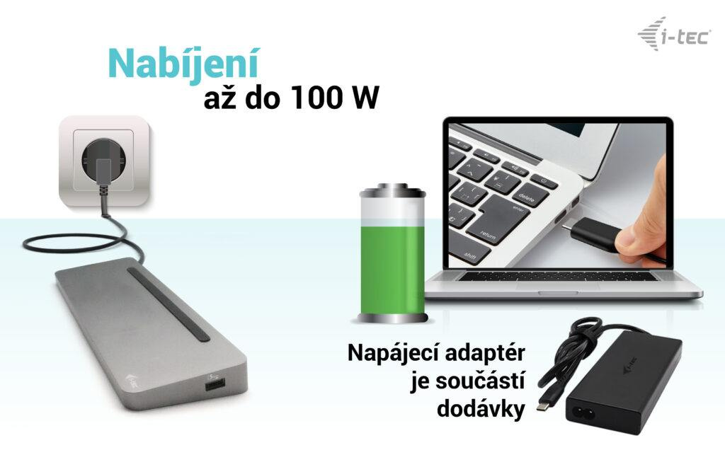 I-tec USB-C Metal Ergonomic 3x 4K Display Docking Station with Power Delivery 100 W + i-tec Universal Charger 100 W