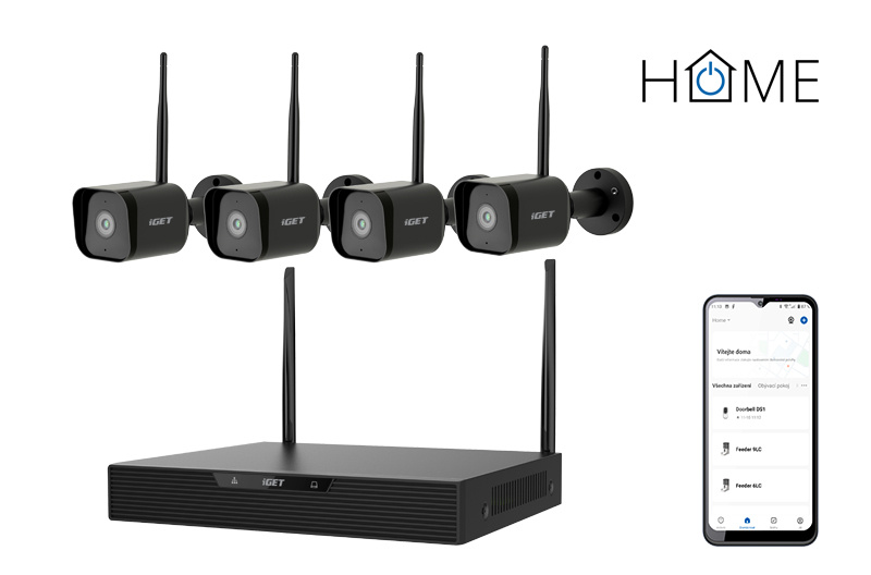 iGET HOME NVR N4C4 - CCTV bezdrátový Wi-Fi set 2K+ rozlišení, 4CH NVR + 4x kamera se zvukem a IR