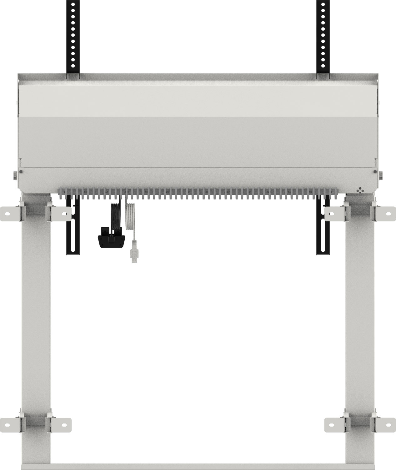 This fixed on-floor and wall single-column electric lift stand is a perfect solution for 55"-98" displays. It’s suitable with screens up to VESA 800x600mm and up to 120kg. Equipped with an easy mount, based on “pull and release” brackets and a wired remote, it is a perfect solution for displays placed in classrooms or conference rooms.