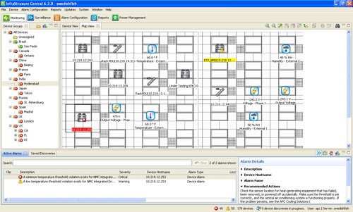Na dodavateli nezávislý, škálovatelný monitorovací systém, který shromažďuje, organizuje a distribuuje kritické výstrahy, videozáznamy sledovacích kamer a klíčové informace a poskytuje unifikovaný pohled na komplexní prostřední fyzické infrastruktury z kteréhokoliv místa v síti.