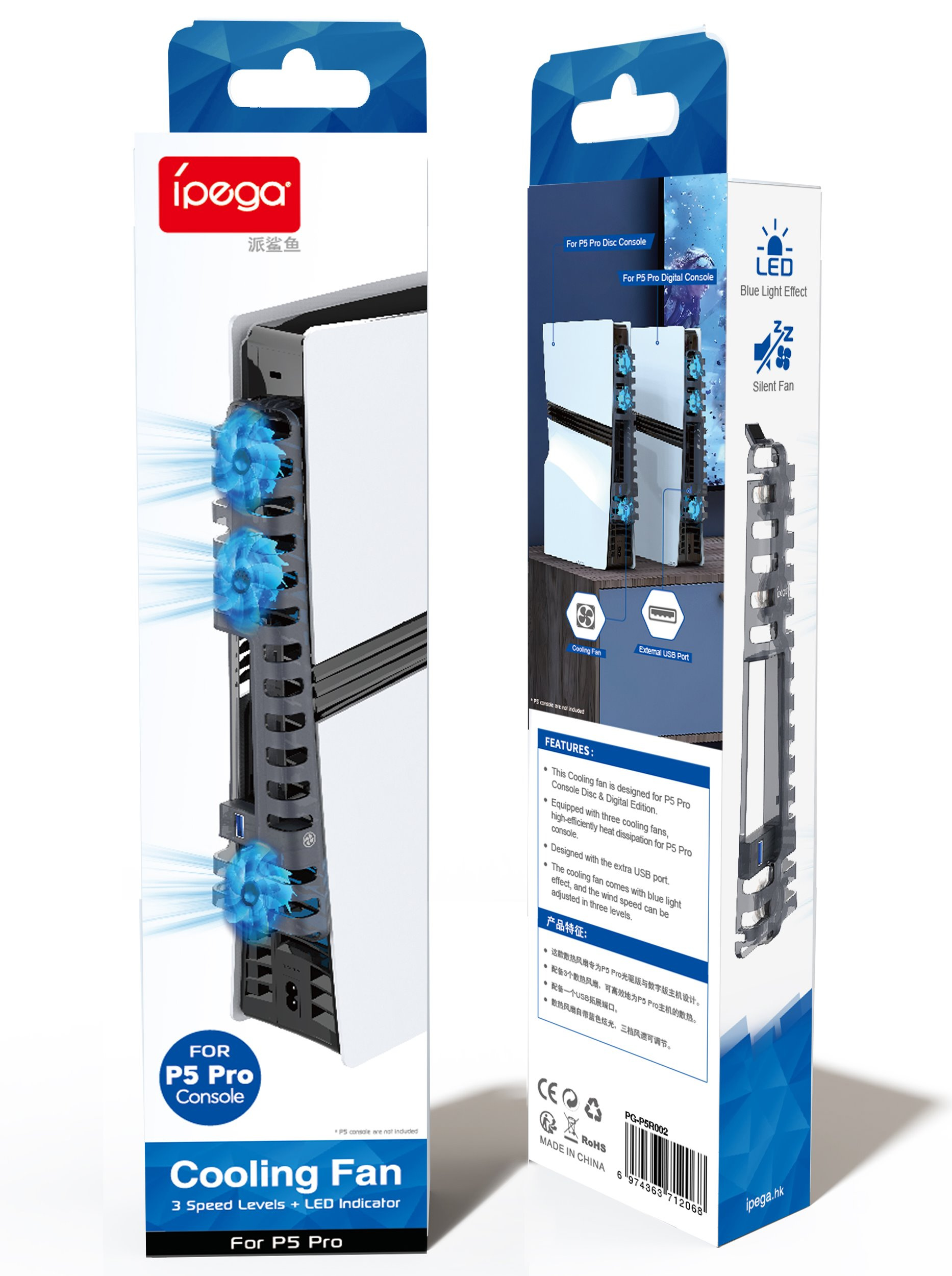 iPega P5R002 Přídavné Chlazení pro PS5 Pro/Slim Transparent