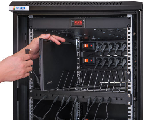 *Pevná uzamykatelná konstrukce zajistí bezpečné uložení a hromadné nabíjení až 20ks libovolných notebooků do velikosti 15,6".