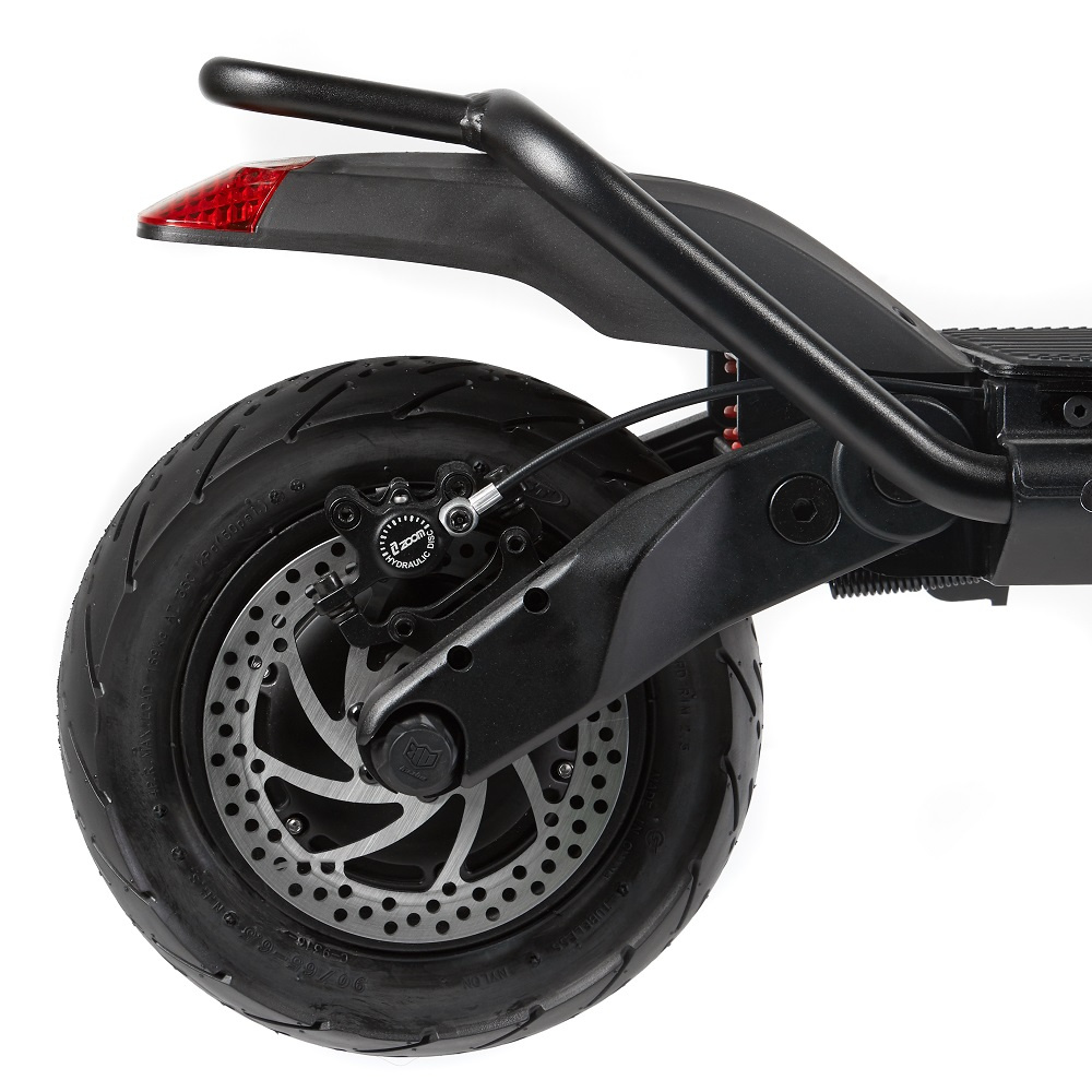 S dojezdem až 90 km není potřeba nabíjet každý den. Vyztužený hliníkový rám zaručuje zvýšenou odolnost. Váha 44 kg je u takto robustní a výkonné koloběžky bezkonkurenční.