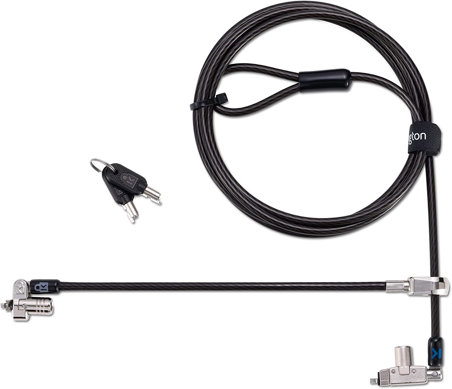 Dual lockheads let you lock two devices with a single solution. Secondary T-bar lockhead fits industry-standard Kensington Security Slot. Plastic sheathing protects surfaces. 5mm keying system is common across all of Kensington’s latest keyed locks, so there’s only one keying system to manage