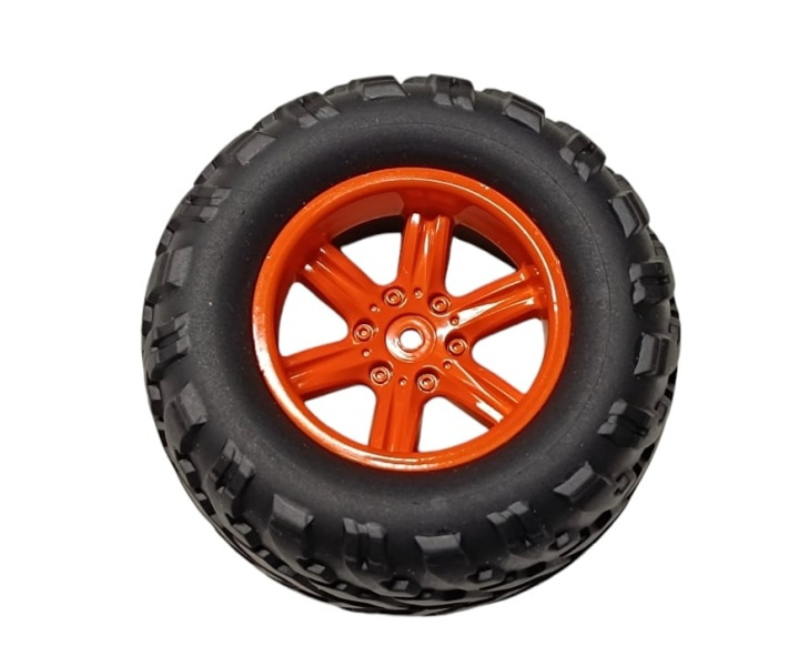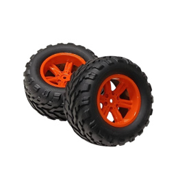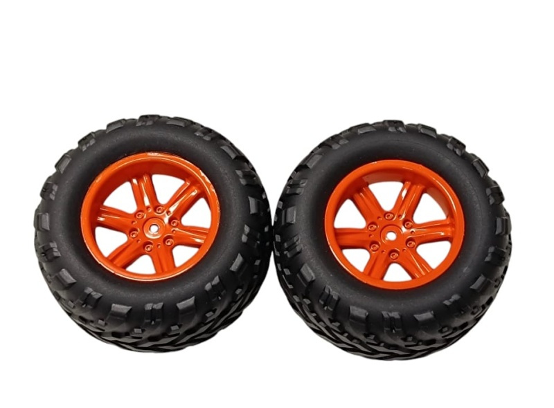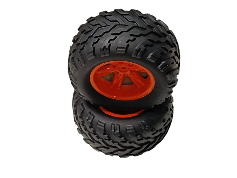 Kola pro model Dominátor Monster od RMT ( 2 ks) oranžová Balení obsahuje : 2 ks kol- jedno levé a jedno pravé kolo Výška kola včetně pneu 10,3 cm, šířka pneu 5,2 cm, průměr uložení pro unašeč 1,9 cm.