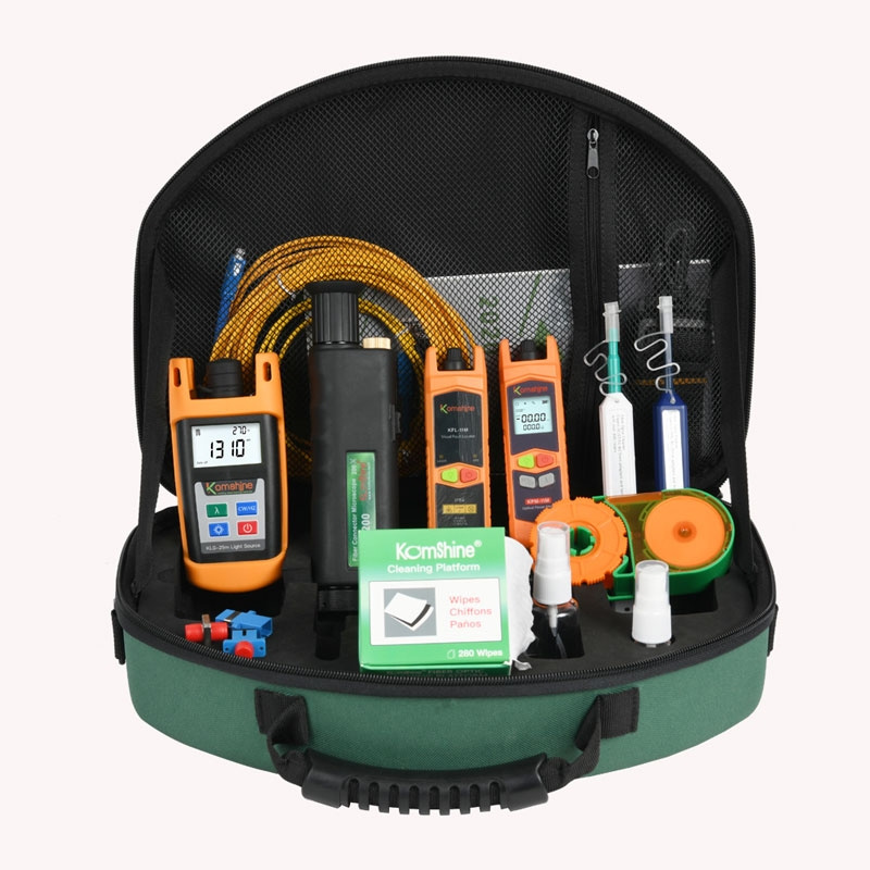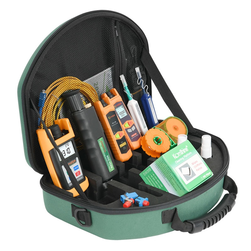 Sada nástrojů pro výstavbu optických sítí KLT-15D je profesionální sestava nářadí pro testování ztrát optických vláken a údržbu telekomunikačních systémů.