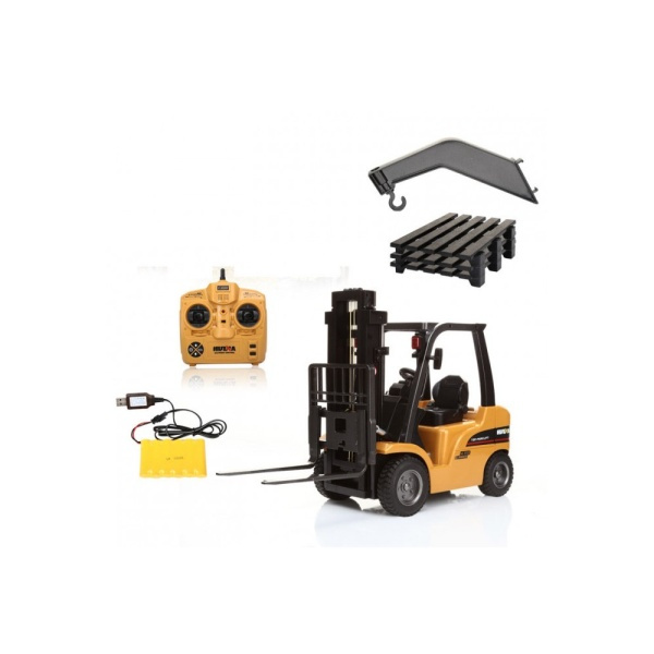 KOVOVÝ VYSOKOZDVIŽNÝ VOZÍK 1:10RC vysokozdvižný vozík 1:10 má vysokou nosnost, a to hlavně díky výkonnému motoru. Tento pevný, stabilní a perfektně vybavený vozík je převážně vyroben z kvalitního kovu. Předností modelu je i nenarušitelné 2,4 GHz - 8-kanálové rádiové dálkové ovládání.RC model je vybaven několika funkcemi: vidlice jdou ovládat nahoru / dolů, jízda dopředu / dozadu, doprava / doleva, vypínatelný zvukový modul, světelný a demo režim…Rám kabiny, vidlice a rameno s nakládacím hákem jsou vyrobeny z kvalitního kovu. Další části modelu jsou zhotoveny z ekologického odolného ABS plastu a pneumatiky ze skutečné gumy. Vozík jezdí na jedno nabití 20 minut a má dosah neuvěřitelných 50 metrů.Stačí jen dokoupit 4xAA baterie do vysílače a jízda může začít.! Obsah balení: Model - Vysokozdvižný vozík Dálkové ovládání Nabíječka Baterie Paleta - 2x Technické parametry: Měřítko: 1/10 Konstrukce auta: stroj Délka auta: 51 Šířka auta: 18 Výška auta: 30 Hmotnost auta: 3100 Barva: žlutá Kapacita akumulátoru v autě: 400 Napětí akumulátoru v autě: 7.2 Typ akumulátoru do auta: Nimh Typ nabíječky: USB Napájení ovladače k autu: 4xAA Doba jízdy auta: 20 Dosah ovládání auta: 40 Frekvence ovládání RC auta: 2,4Ghz