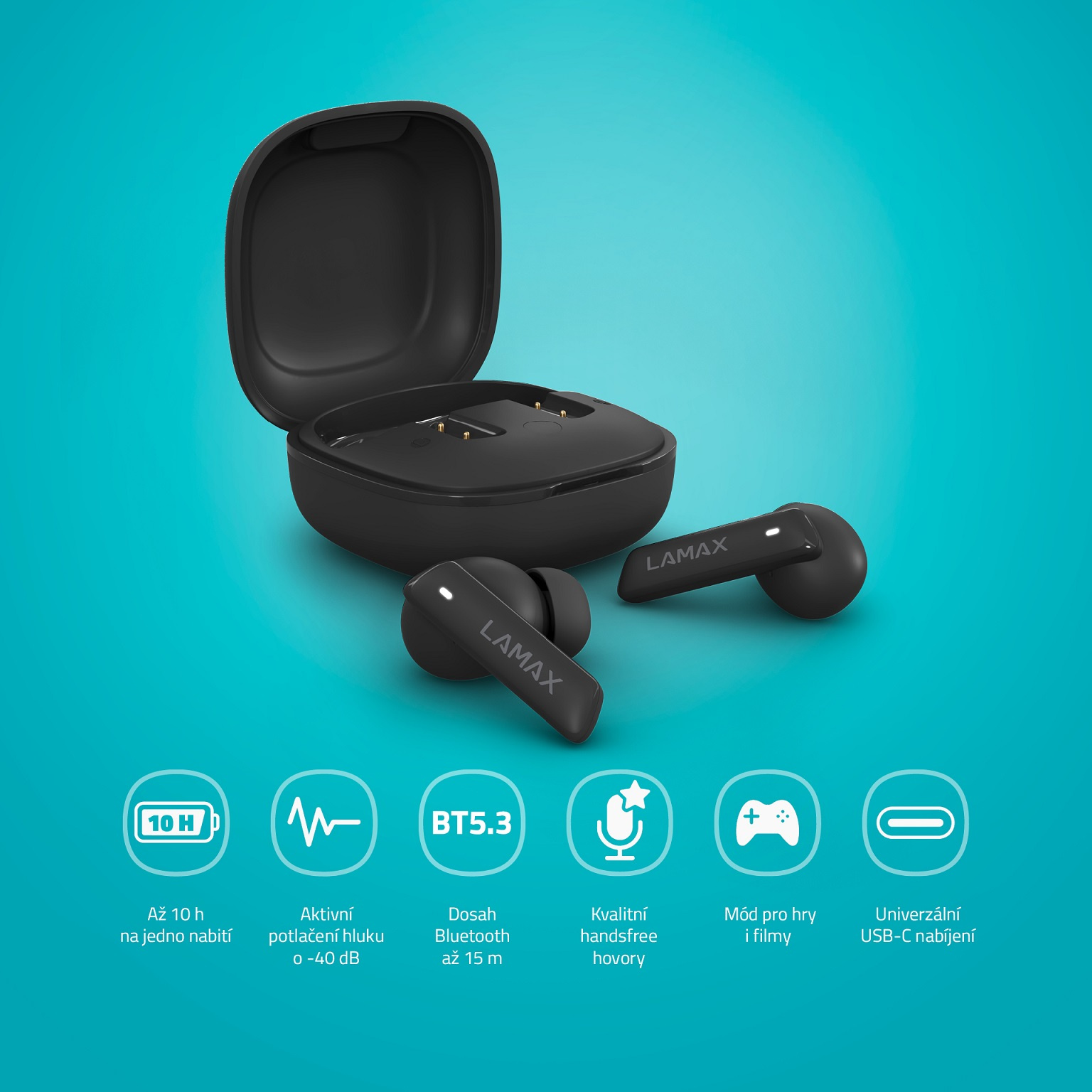 Ergonomicky tvarovaná sluchátka skvěle padnou do ucha a automaticky se spárují s jakýmkoliv tvým zařízením, a to bezdrátově, rychlostí blesku díky Bluetooth 5.3, kterým se chlubí jen ty nejmodernější modely. Prostě sluchátka super kvalitky, který ti navíc na jedno nabití vydržej až 10 hodin a dalších 34 hodin v sobě má ukryto pouzdro. Celkem teda 44 hodin senzačního zvuku. Pak stačí pouzdro, který na pohodu dáš i do kapsy, dobít přes USB-C.