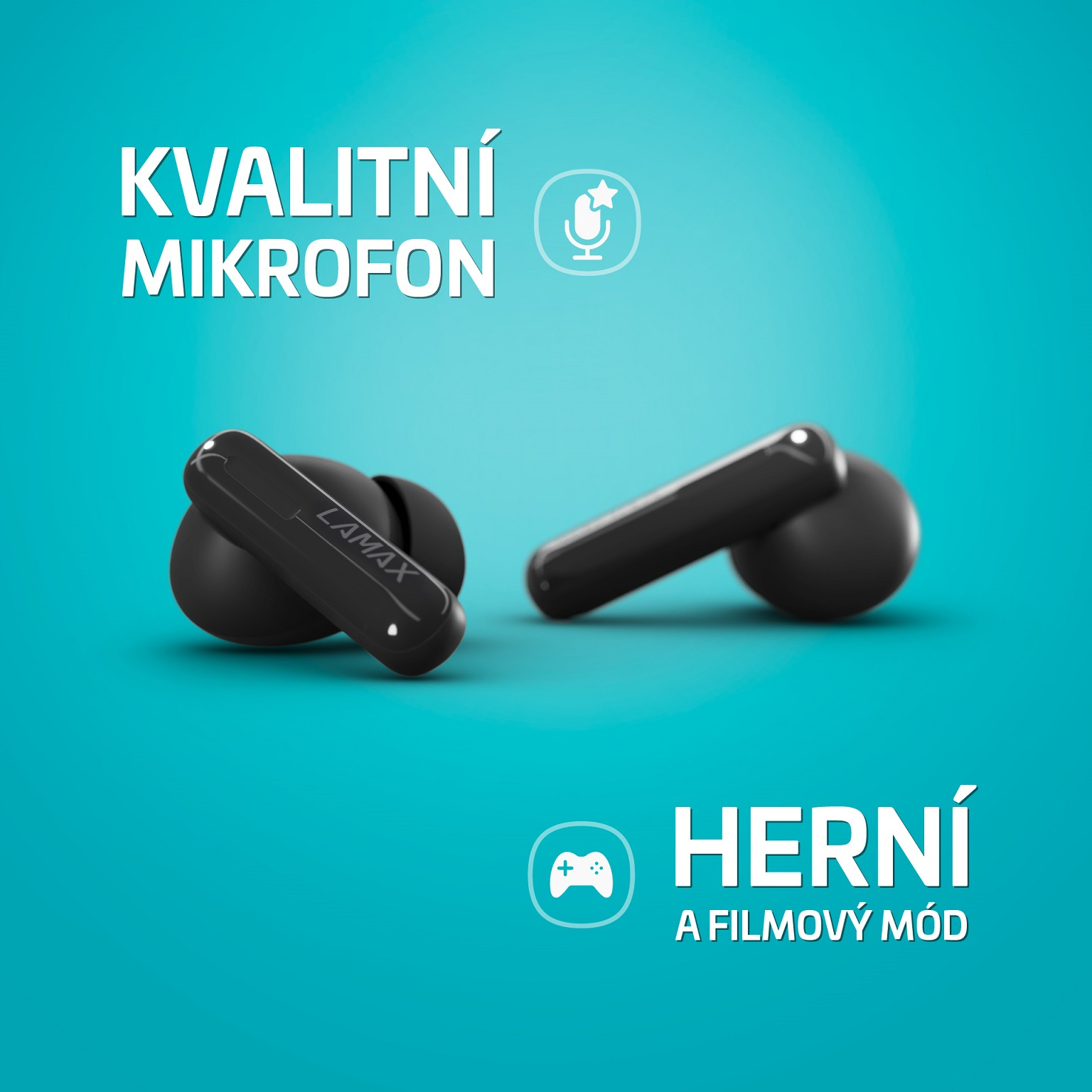 Nejlepší zvuk, jaký si umíš představit, v naprosto top designu a s dlouhou výdrží až 8 hodin, tak tohle všechno můžeš mít s LAMAX Clips1 Plus. Bezdrátová špuntová sluchátka s nožičkou do uší se automaticky bleskově spojí přes Bluetooth 5.3 s tvým telefonem a dopřejou ti dokonalý požitek, ať už posloucháš cokoliv. Gamerům určitě neunikne Herní mód, který zvýší požitek ze hry. Dotykem si přeskakuješ mezi tracky nebo přijímáš hovory, u kterých oceníš kvalitní mikrofon. To nejlepší je ale dokonale čistej a vyrovnanej zvuk, AAC, SBC kodeky, ANC pro potlačení okolního hluku a Transparency mode, aby byl poslech perfektní i bezpečnej. Tak cestuj, pracuj nebo sportuj stylově a v rytmu.