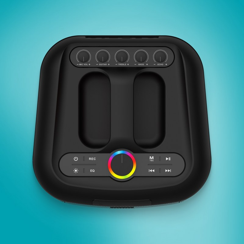 Toto zařízení je díky několika vstupům (micro SD, USB-A, AUX) uzpůsobeno k přehrávání hudby v různých formátech (MP3, WAV, FLAC, AAC) a z různých zdrojů. Navíc nabízí možnost flexibilního připojení kytary nebo bezdrátového mikrofonu (je součástí balení) a poskytuje tak naprostou svobodu. Tady začíná skutečné dobrodružství - produkce vlastní hudby. Díky možnosti nahrávání jste na dobré cestě k vytváření vlastních demosnímků. A pokud nemáte po ruce vlastní seznam skladeb, můžete si vždy naladit vestavěné FM rádio. Veškerá nastavení lze pohodlně spravovat prostřednictvím podsvíceného LED displeje.