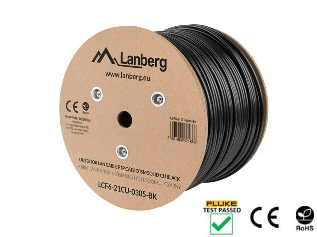 LANBERG LAN KABEL CAT.6 FTP 305M PEVNÝ VENKOVNÍ CU ČERNÝ FLUKE PŘEDÁN