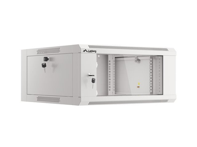 LANBERG Nástěnná jednodílná skříň 19", 4U 570x600 snadná a rychlá montáž (v rozloženém stavu) šedá (RAL7035)