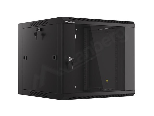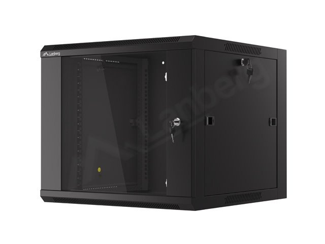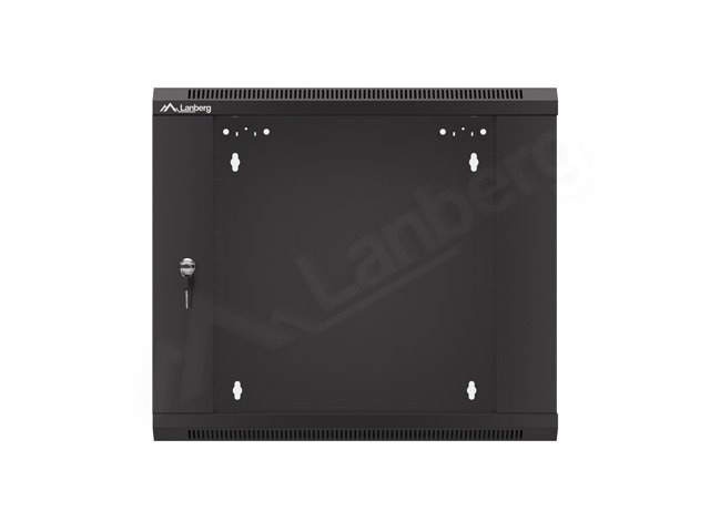 LANBERG Nástěnná jednodílná skříň 19", 9U 570x600 snadná a rychlá montáž (v rozloženém stavu) černá (RAL9004)