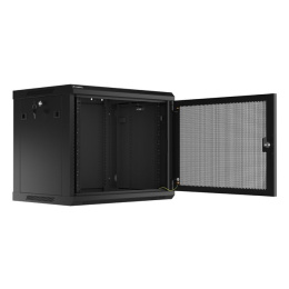 LANBERG Nástěnná jednodílná skříň 19", 9U/600x450, (v rozloženém stavu), perforované dveře, černá (RAL9004)