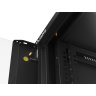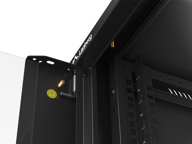 - Přední dveře: odnímatelné, s uzemněním a možností montáže a otáčení až o 180° na obě strany, vybavené 5 mm silným tvrzeným čelním sklem a pevným zámkem,