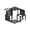 - Přední dveře: odnímatelné, s uzemněním a možností montáže a otáčení až o 180° na obě strany, vybavené 5 mm silným tvrzeným čelním sklem a pevným zámkem,