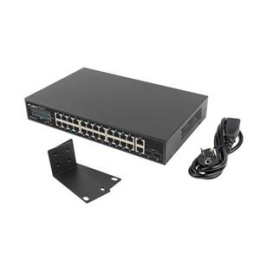 24x 1000BASE-TX 802.3af/802.3at PoE+, 2x 1000 Mbps Uplink, 2x 1000BASE-X SFP