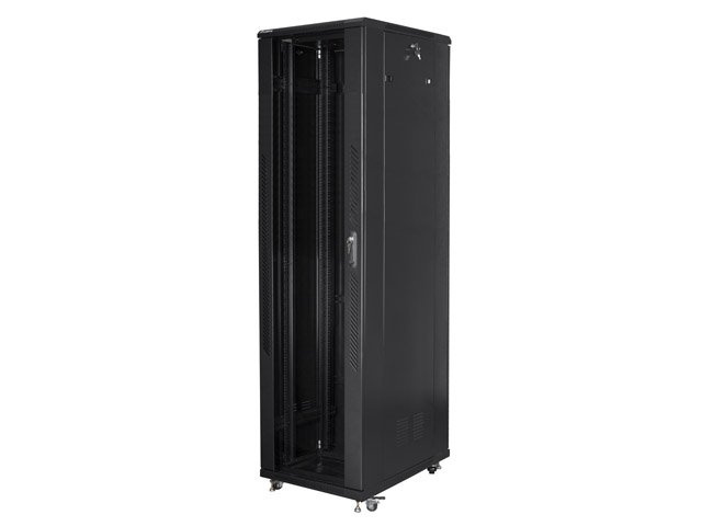 Konstrukce výrobku je vyrobena z vysoce kvalitní oceli válcované za studena, která se vyznačuje vynikajícím designem a vysokou kvalitou řemeslného zpracování. Skříň umožňuje plné nastavení hloubky vertikálních montážních lišt. Navíc je vybaven předními dvířky z tvrzeného skla se zámkem a možností instalace těchto dvířek na pravou nebo levou stranu.